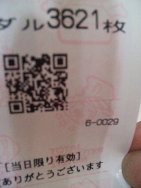 成績 投資7000円、3621枚、換金72400円、65400円勝ち