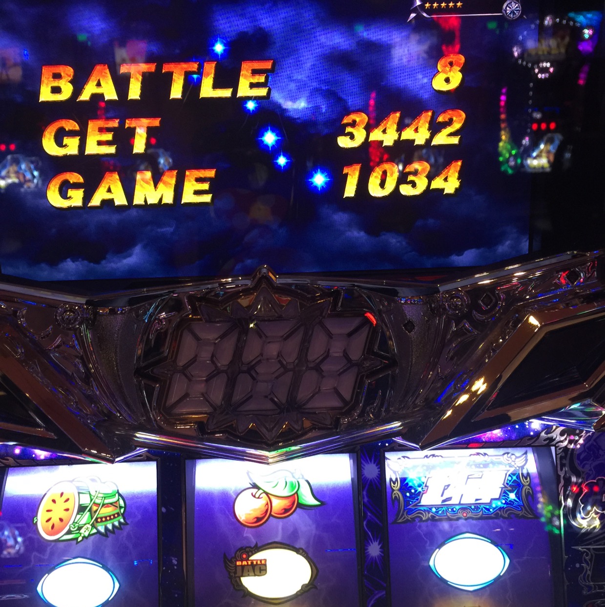 ちなみに、百裂モードは、ピキーンドゴーンの画面で、第3停止ボタンを押しながらボタンを押すと、「ひゃくれつ~!」の声が聞こえて、下のパネルが消灯します。